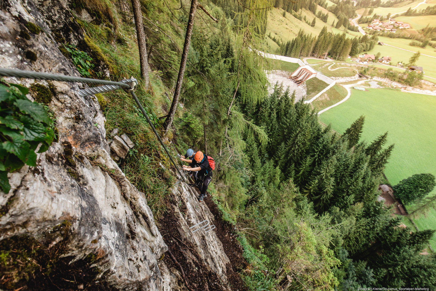 Ein unvergessliches Naturschauspiel bietet euch der Klettersteig mit Seilrutschen durch die Kesselfallschlucht in Kleinarl. Equipment für Erwachsenen und Jugendlichen ab 10 Jahren. Über fünf aufregende Seilrutschen und einer spannenden Seilbrücke, die zwei Wasserfälle quert, geht es hinab ins Tal. Den Start der Flying-Fox erreicht ihr entweder über einen leichten, mittleren oder schweren Klettersteig. Kurz und gut – hier ist für jedes Niveau etwas geboten. Raus aus der Komfortzone – lass deinen Adrenalinspiegel steigen…